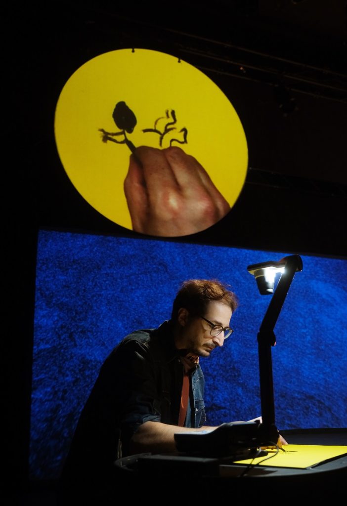 Son histoire est racontée à travers une succession d’esquisses et d’illustrations réalisées en live, accompagnées de bruitages et de compositions musicales. Un tourbillon d’images et de sons pour une immersion au cœur de ce cerveau exceptionnel.
